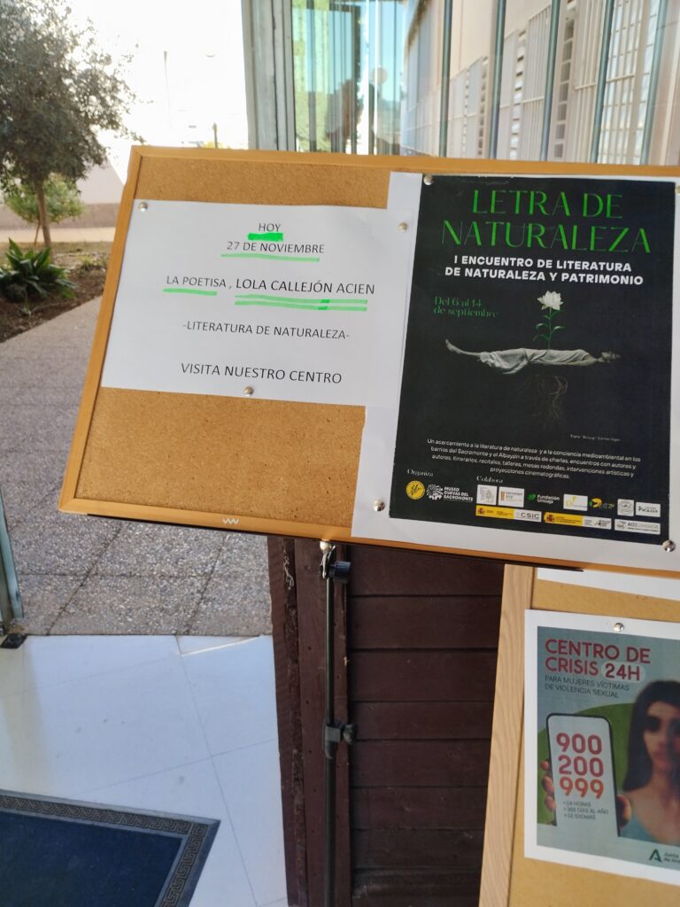El 27-11-25 estuvimos con el alumnado de bachiller del IES Arabuleila (Cúllar Vega). Para las lecturas, se hizo una selección de mis poemarios: AZOGUES, TINTA VERDE y HABLANDO CON LA EXTICIÓN (éste último en los textos de la I Residencia de Literatura y Medio Ambiente). A través de la ecopoesía pudimos recorrer los puntos calientes de biodiversidad del planeta. Los poemas nos acercaron a especies muy singulares en peligro de extinción. Hubo una buena interacción y participación. Desde aquí, mi agradecimiento al alumnado y al profesorado que lo hizo posible.